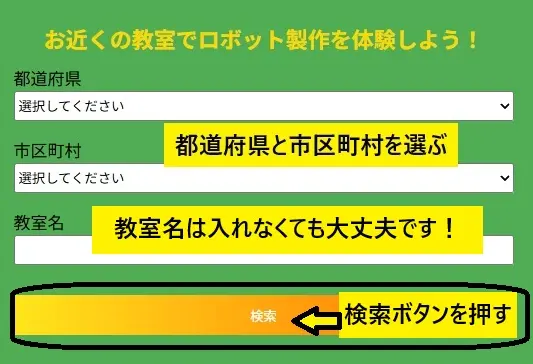 ヒューマンアカデーミーロボット教室公式サイトにアクセスし「お近くの教室を探す」をクリックする。